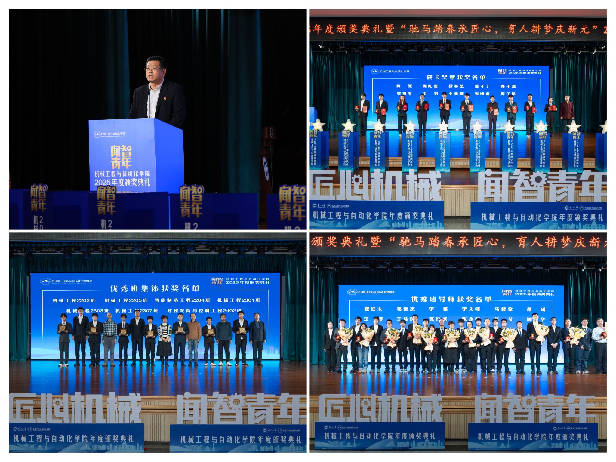 学院党委郝建山正在致辞中系统回首了一年来学院取得的主要成绩。学院积极办事国度计谋,投身深度金属矿智能开采纳配备全国沉点尝试室扶植,并正在环节科研范畴实现标记性冲破,获得国度严沉专项支撑。学院成功引进增材取激光制制范畴领军团队,稳步推进学校新增学位点扶植,为久远成长奠基根本。正在人才培育方面,研究生学术丰盛,正在“挑和杯”“中国国际大学生立异大赛”等多项赛事中斩获国度级项,结业生就业率持续连结高位,展示了全面成长的优良素养。郝建山阐释了“闻智青年”品牌的育人内涵,勉励全体师生胸怀“国之大者”,将小我成长融入“制制强国”计谋,过硬本事,怯于立异创制,勤奋成为担任平易近族回复大任的时代新人。副院长罗忠表扬决定。颁环节分三轮顺次进行。起首颁布的是“院长章”,刘云飞为毛羽等10名正在专业进修、科技立异、社会实践等方面表示杰出的学生颁布章。随后颁布“优良班集体”项,班导师代表为7个正在班风、学风及凝结力扶植中成效显著的班级颁。最初,仪式聚焦育人一线论理学生代表向获评“优良班导师”的教员们献上鲜花取荣誉证书,表达诚挚感谢感动。“院长章”获得者代表毛羽连系科研竞赛取意愿办事履历,讲述了“道阻且长,行则将至”的成长;“优良班集体”获代表豆煜轩分享了班级凝心聚力、共建优秀学风的活泼经验。正在“闻智匠心 共话青蓝”出格环节,优良班导师马哲伦取所带班级学生代表刘定佳同台交换,从分歧视角展示了师生间思惟引领、学业互帮、讲授相长的温情互动,彰显了育人一线的深挚交谊取结实成效。据悉,“闻智青年”是机械工程取从动化学院出力打制的文化育人品牌。本次颁仪式既是年度的集中展现,也是典型树立、激励朝上进步的主要平台,旨正在指导全体学生以先辈为楷模,坚想、夯实专业根本、锻制立异能力,勤奋成长为具有家国情怀、全球视野取创制活力的杰出工程人才,为学校“双一流”扶植和高质量成长注入芳华力量。